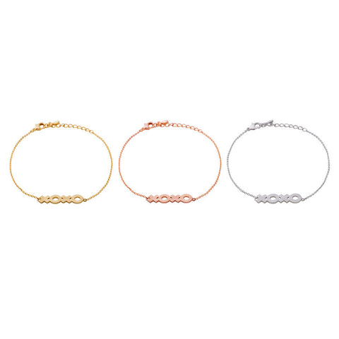 A petite style that packs a punch, the XOXO series is one of our personal favorites. The bracelet features sleek, brushed metal letters, and an adjustable lobster clasp, all in silver plating. Layer this with other delicate mixed metals wristwear, or style it by itself for a simple finish.