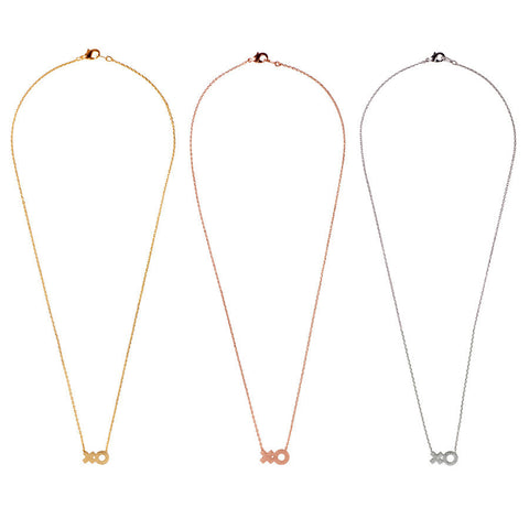 A petite style that packs a punch, the XOXO series is one of our personal favorites. This necklace features sleek, brushed metal letters, and an adjustable lobster clasp, all in silver plating. Layer this with other delicate chain pendants, or style it by itself for a simple finish.